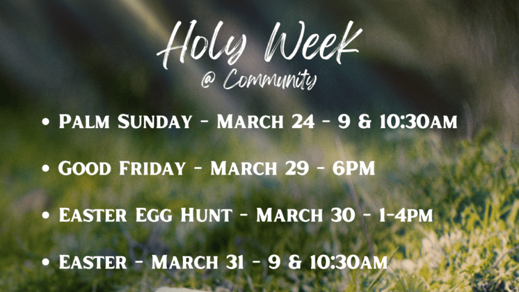 Community Update from Dr. Bob – 03/20/24 As we approach Palm Sunday, we’re reminded that sometimes the Kingdom of God comes in unexpected—even shocking—ways. The people wanted a powerful king, […]