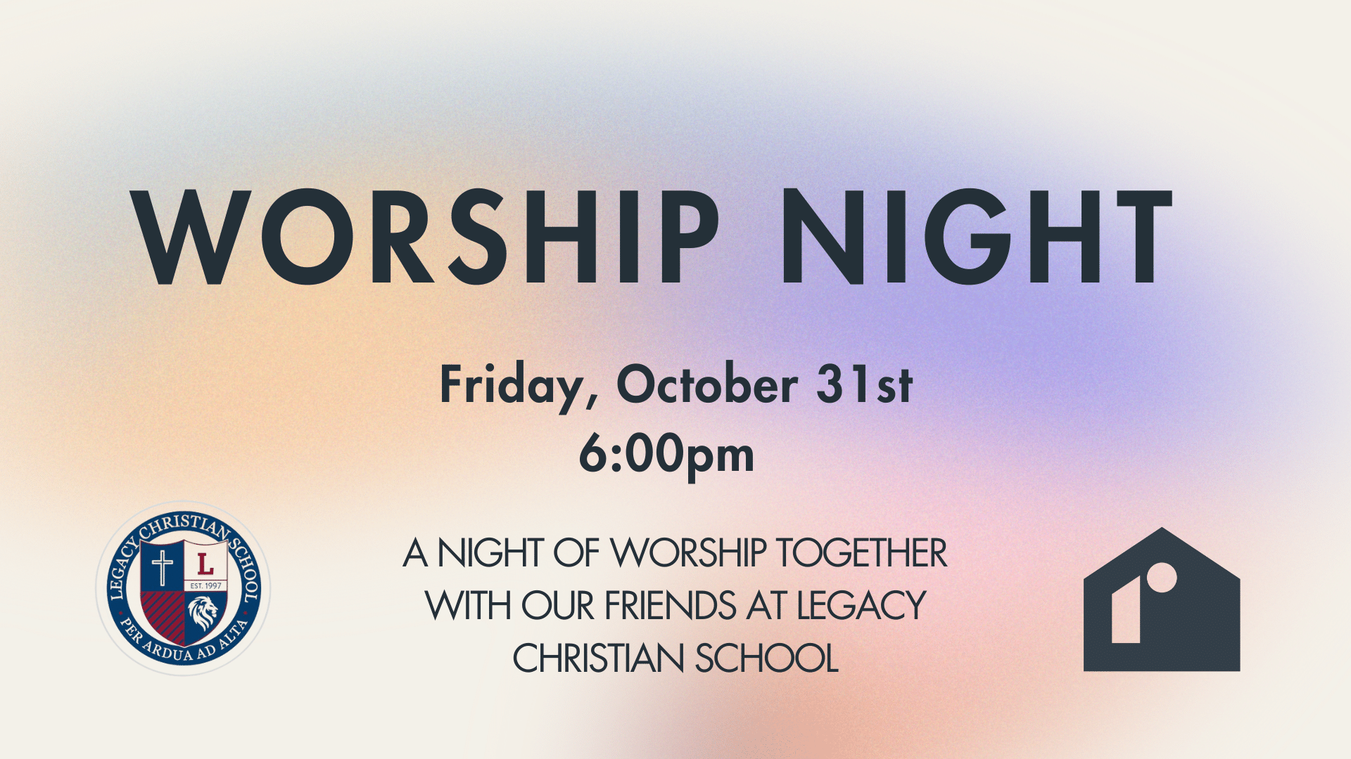 But if your neighborhood isn’t the right setting, or you’re looking for a different way to spend the night, join us for a night of worship with our friends at Legacy Christian School. Invite a friend–it will be an evening filled with praise, prayer, and reflection. Friday, October 31 @ 6:00pm. Location: Community Church Rancho